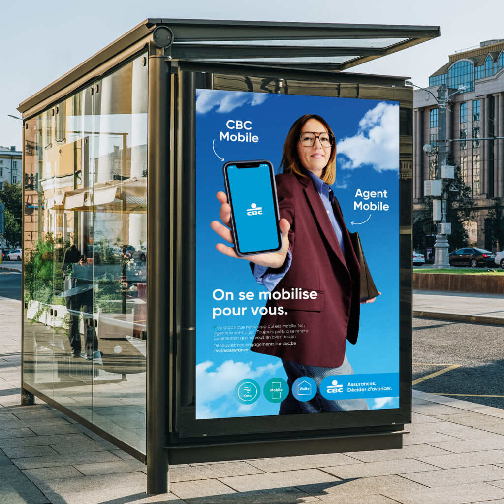 Le message se décline sur différents supports de communication tels que le DOOH et l’OOH, déployés à travers toute la Wallonie, ainsi que dans les agences d’assurances CBC. La campagne s’est également vue déclinée en deux spots radio, l’un s’adressant aux particuliers et l’autre aux professionnels. Sans oublier le digital, avec une campagne sur META.