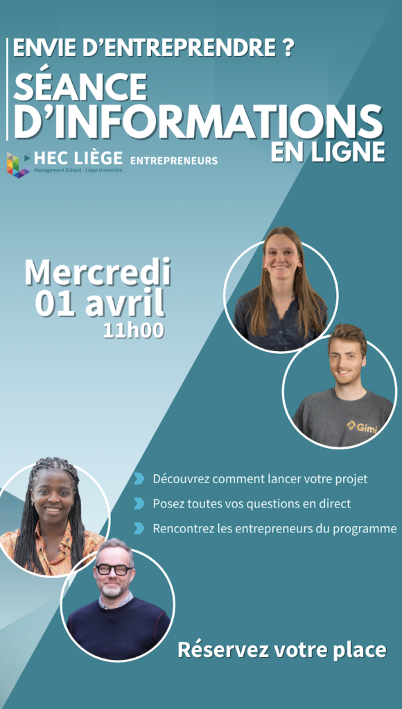 La session se tiendra en ligne - le 01 avril 2025 - à 11h (heure de Bruxelles) et permettra de présenter le programme, ainsi que les projets entrepreneuriaux proposés dans le cadre du cursus.