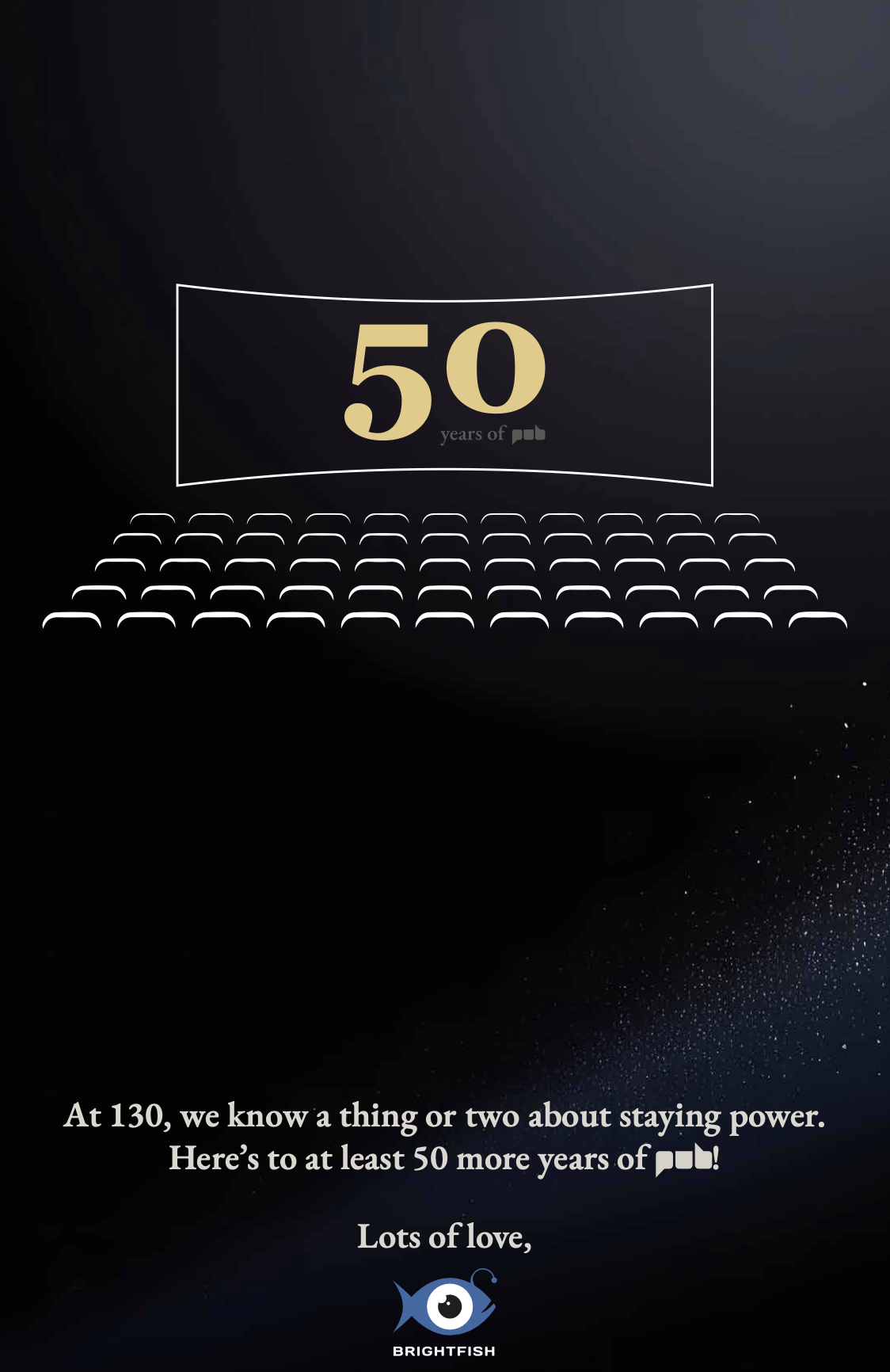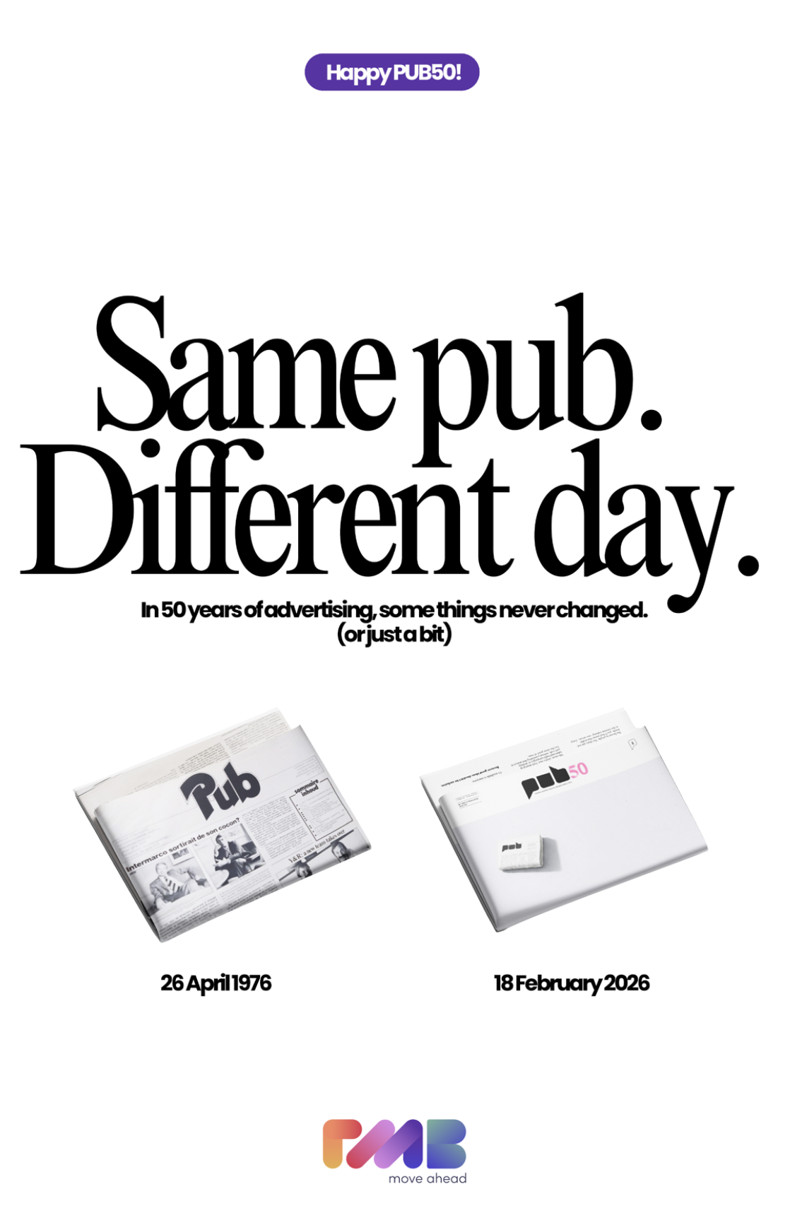 Quatorze pages, quatorze messages, et une même volonté : célébrer ensemble 50 ans de PUB ! MERCI !