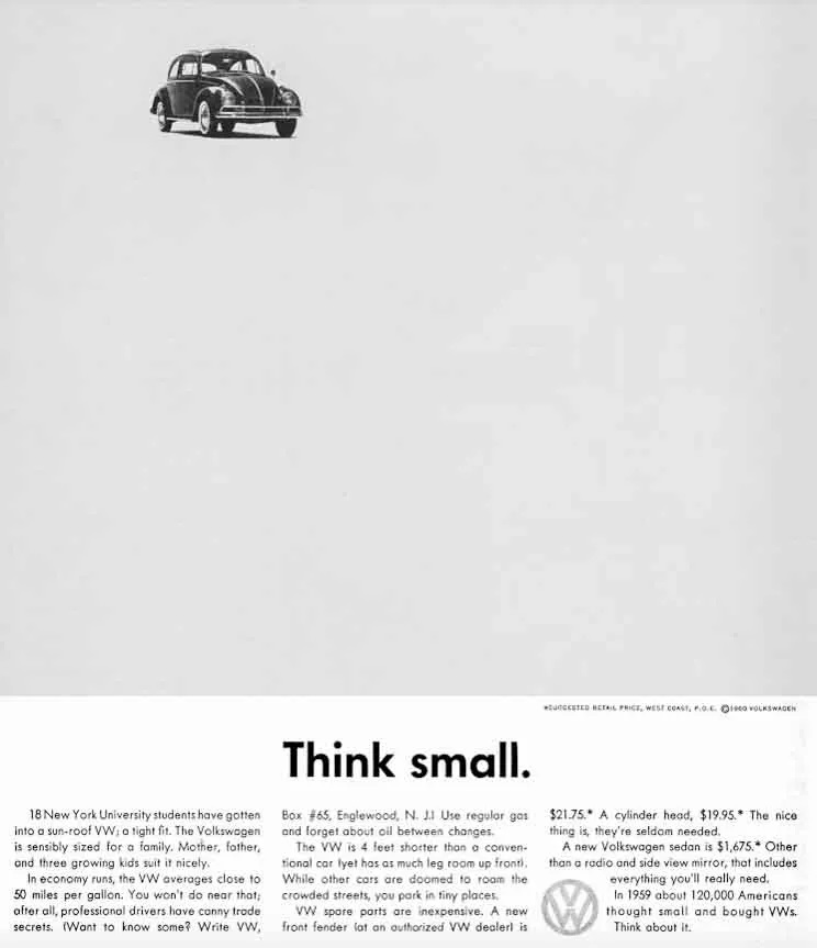 PUB rend hommage au "Think Small" de Bill Bernbach