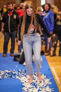 Wat : per opgehaalde euro wordt blootsvoets 10 cm gelopen over pijnlijke Legoblokjes. Opbrengst : 720€