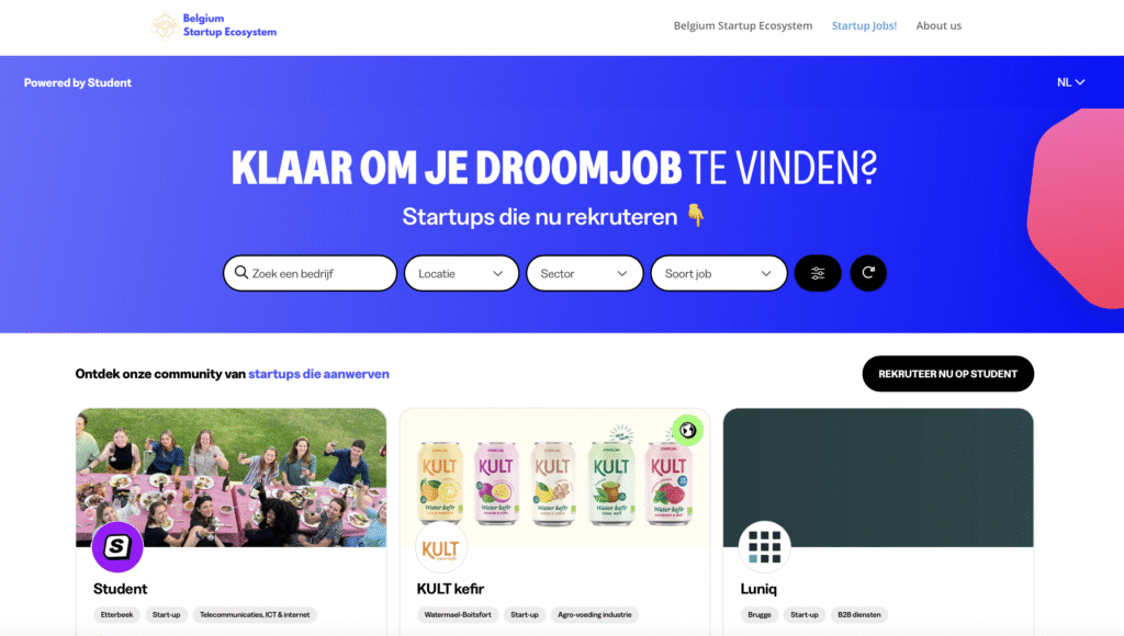 Dankzij technische integratie verschijnen de vacatures van startups uit de uitgebreide database van Student.be nu rechtstreeks op de website van Belgium Startup Ecosystem. Studenten, stagiairs en pas afgestudeerden krijgen zo één centraal toegangspunt om kansen bij groeiende startups te ontdekken, terwijl oprichters profiteren van een grotere zichtbaarheid en betere toegang tot gekwalificeerde profielen.