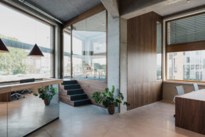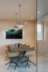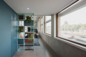 “Het was een doel om iedereen samen te houden en toch voldoende privacy te geven. De bureaus zijn groot, iedereen heeft veel eigen ruimte en de akoestiek is speciaal aangepast zodat je andermans gesprekken niet opvangt. En toch zit iedereen samen”, legt interieurvormgeefster Ellen Van Acker uit.