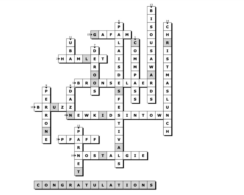 Hieronder vind je de correcte oplossingen van de puzzel, evenals het finale woord dat uit de gekleurde vakjes gevormd kon worden.